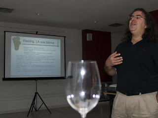 La cata empieza con una "extravagancia", un blanc de noirs manchego, un blanco hecho con tempranillo. Fresco, graso y con correcta acidez, aunque la nariz me despista, me recuerda a los vinos de Airén o Verdejo de expresión sencilla, y esa poca expresión parece más producida por las levaduras artificiales que a las propias, pero más que correcto.